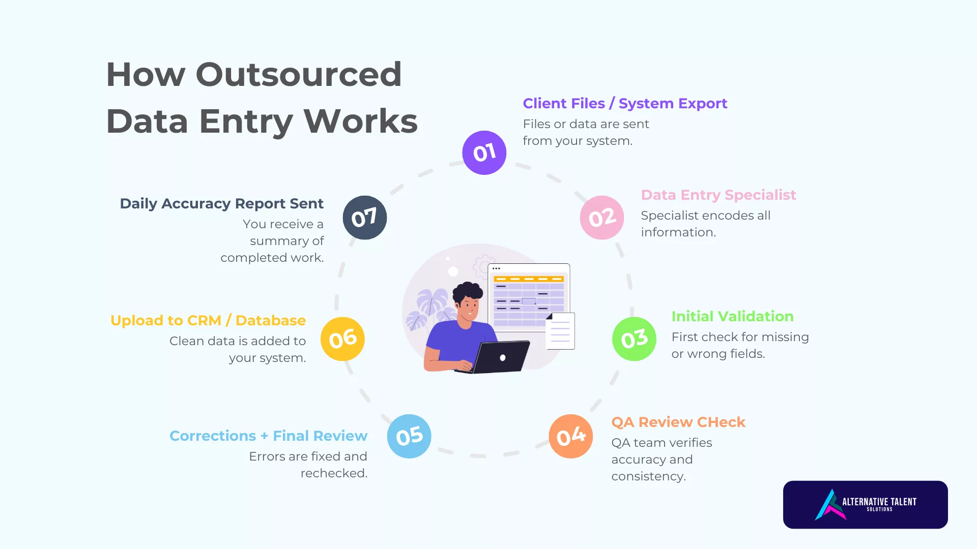 ATS can provide trained data entry specialists who follow strict accuracy and QA standards so your operations stay clean, organized, and reliable.